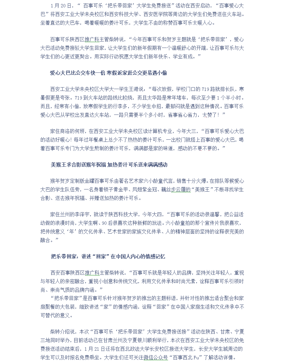 百事爱心大巴送学生回家 免费姜汁可乐被赞暖人心