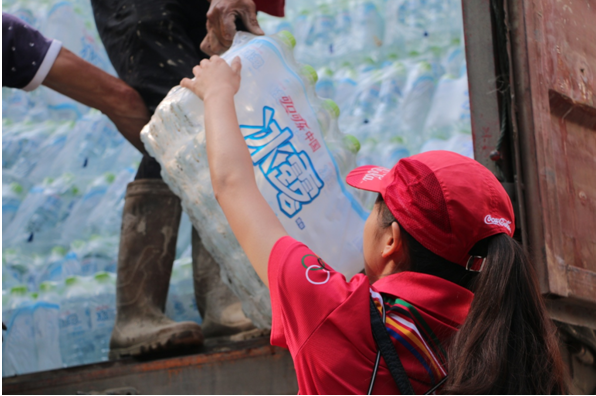 可口可乐志愿者以最快速度把水送到灾民手中