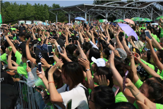 康师傅绿茶代言人李易峰的出现将活动带入了最高潮。男神李易峰一出场,就引起了粉丝们的阵阵尖叫。茶多酚和蜜蜂人偶与李易峰的互动让活动现场充满了乐趣。李易峰也在现场呼吁大家一起绿动健康走,希望大家以后都能保持健康好心情。据悉,7月2日即将在广州天河体育中心南广场开启的康师傅绿茶健康活力派绿动健康走活动,李易峰将再次与大家见面。