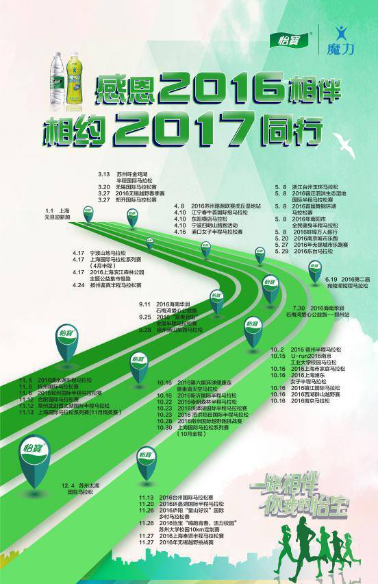 (图为2016年华润怡宝华东区域赞助的部分马拉松活动)