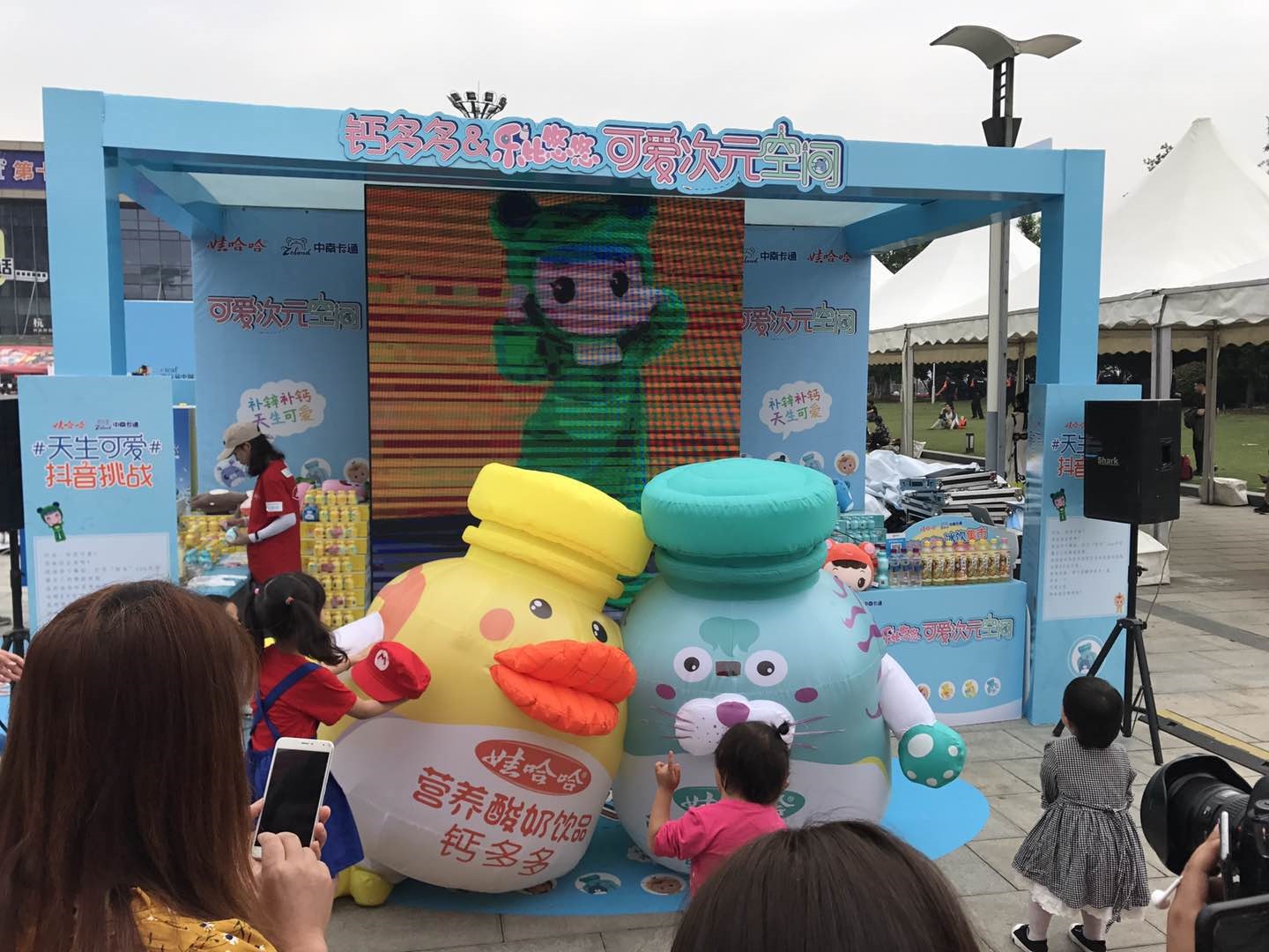 在这个可爱次元空间里,观众们可以在充满各种萌元素的“嘀~小可爱卡の合影亭”尽情和两对萌物一起卖萌拍照,还能大显“抓娃娃”技能,娃娃机里可是定制版的“乐比悠悠”锌多多、钙多多。空间里还有一个“瓶身手绘创意展”,不仅能看到来自全国各大幼儿园的“钙多多创意瓶画”作品,还能亲自在空白瓶身上画画秀创意。“萌是可以治愈心情的,不仅小朋友喜欢萌的东西,成年人也需要从萌物上获得精神慰藉。”一名穿着入时的大学女生说,并在留言墙上写上自己的“可爱主张”:“除了可爱我什么也听不见”。在“钙多多&乐比悠悠可爱次元空间”里,大人和小孩都享受着自己的乐趣。“可爱不分年龄,我们希望每一个人都能从‘可爱’的事物里获得快乐。”娃哈哈的工作人员说。