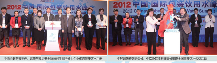 继深圳CGPW2008、青岛CGPW2011成功举办后,中国饮料工业协会再次联合欧洲瓶装水协会,于2012年3月22日-23日在北京召开了“2012中国•国际包装饮用水峰会”(CGPW2012)。
