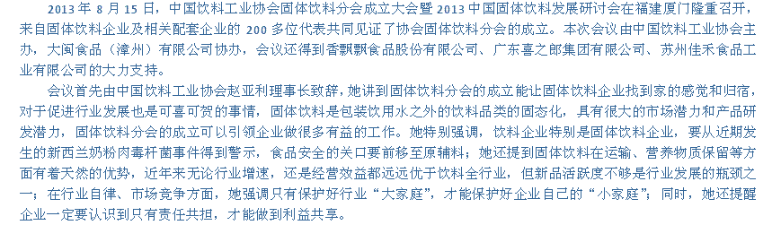 中国饮料工业协会固体饮料分会正式成立