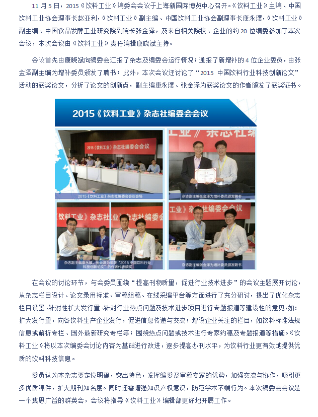 饮料产业链合力创新 ——2015中国国际饮料科技报告会在上海召开