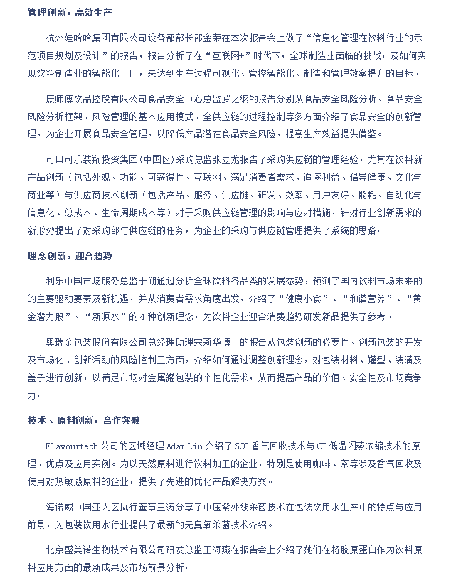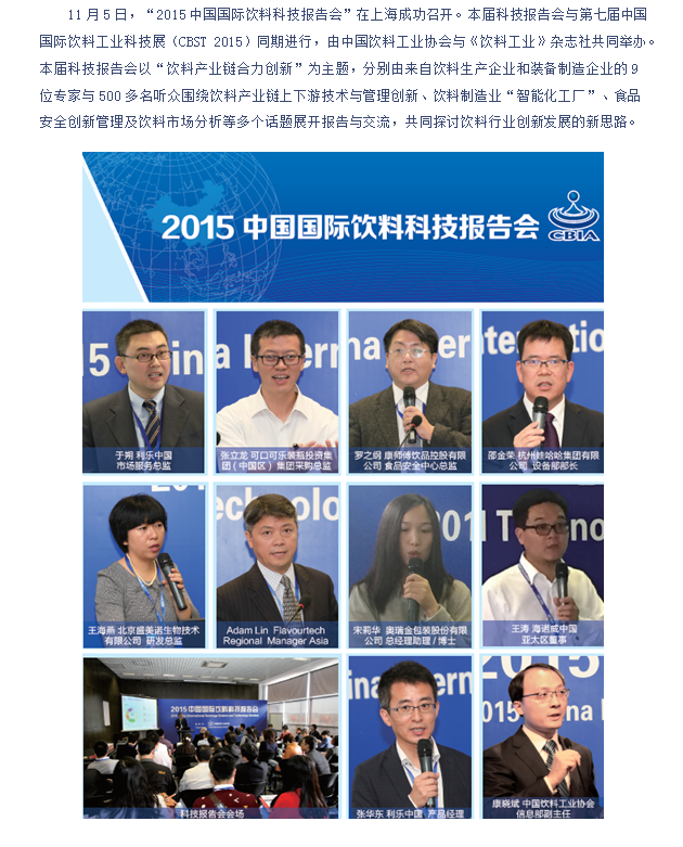 饮料产业链合力创新 ——2015中国国际饮料科技报告会在上海召开