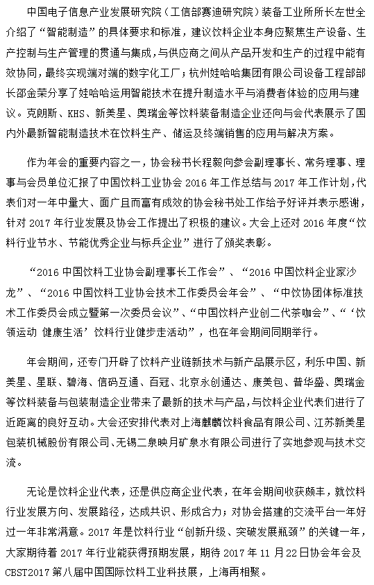 科学智能 做家人喜欢的饮料 ——2016中国饮料工业协会年会在张家港成功召开