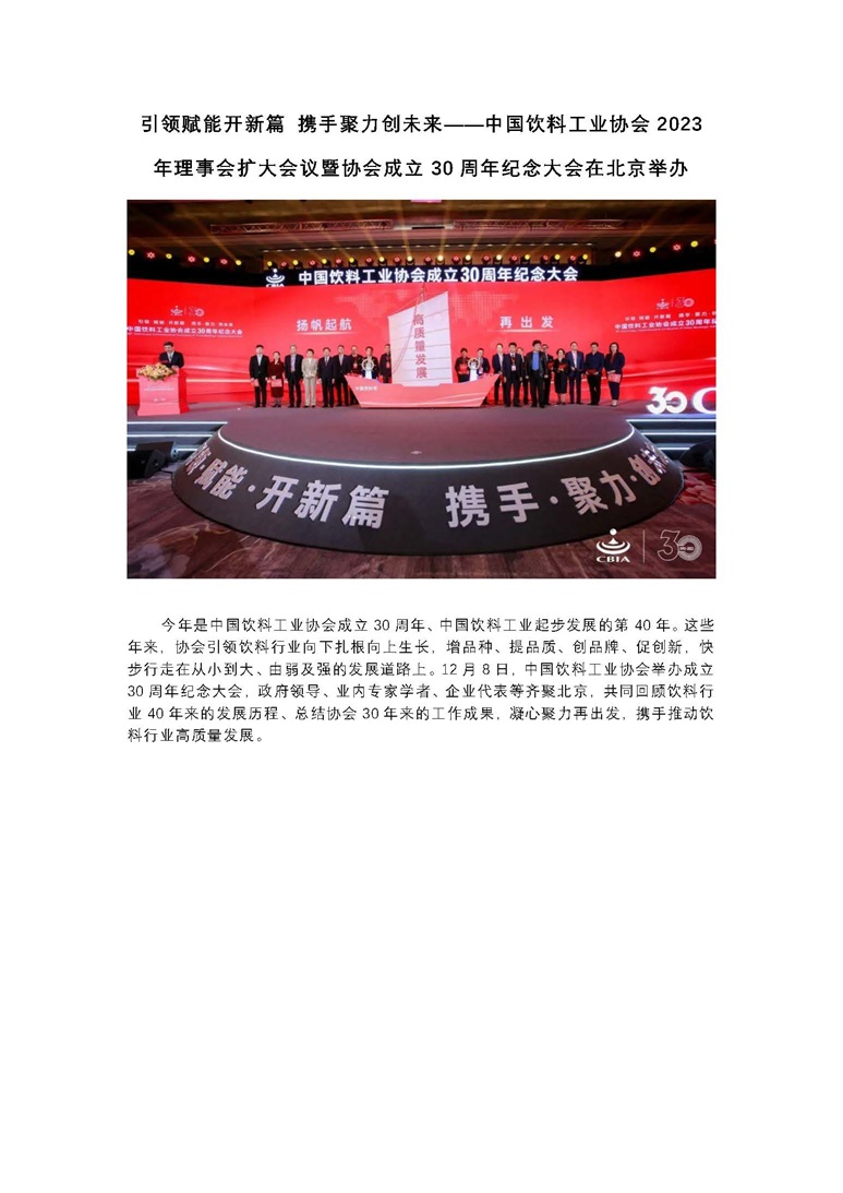 中国饮料工业协会2023年理事会扩大会议暨协会成立30周年纪念大会在北京举办