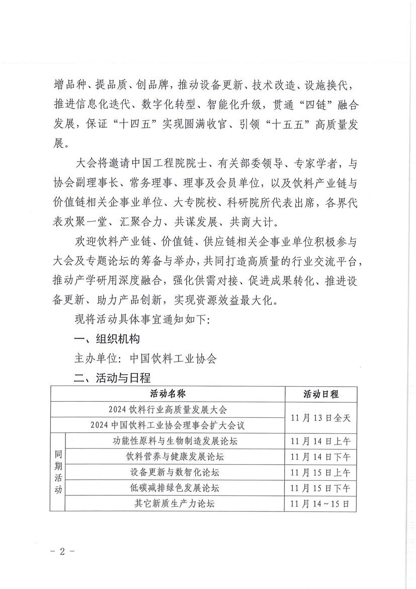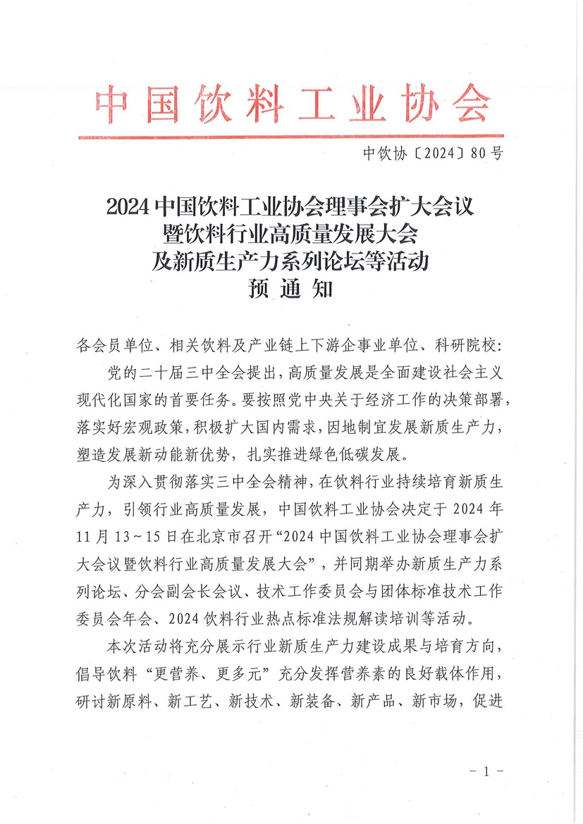 2024中饮协理事会扩大会议暨饮料行业高质量发展大会等活动预通知