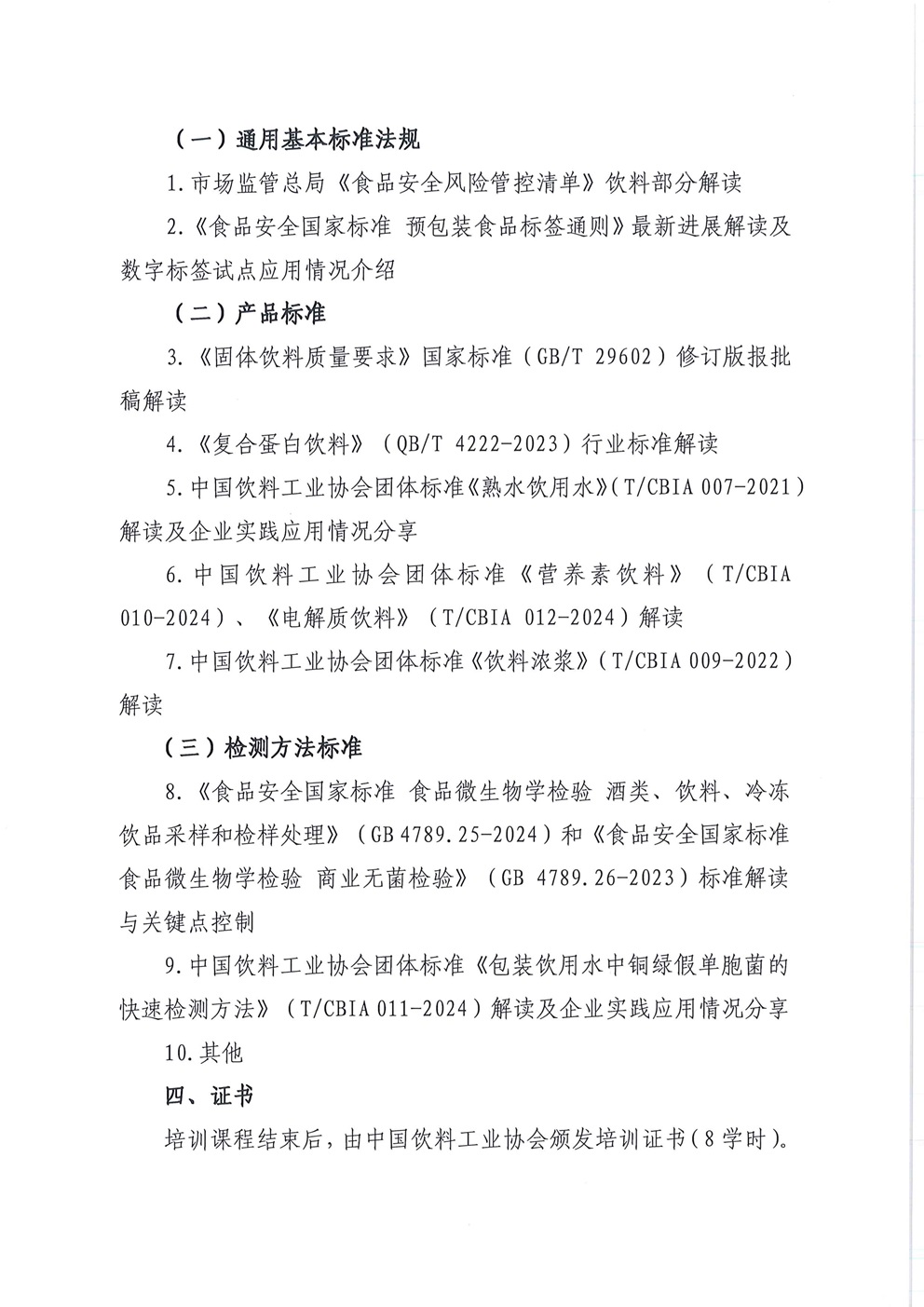 关于举办2024饮料及相关标准法规培训的通知