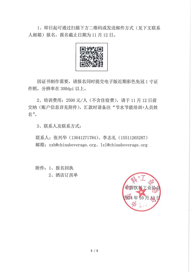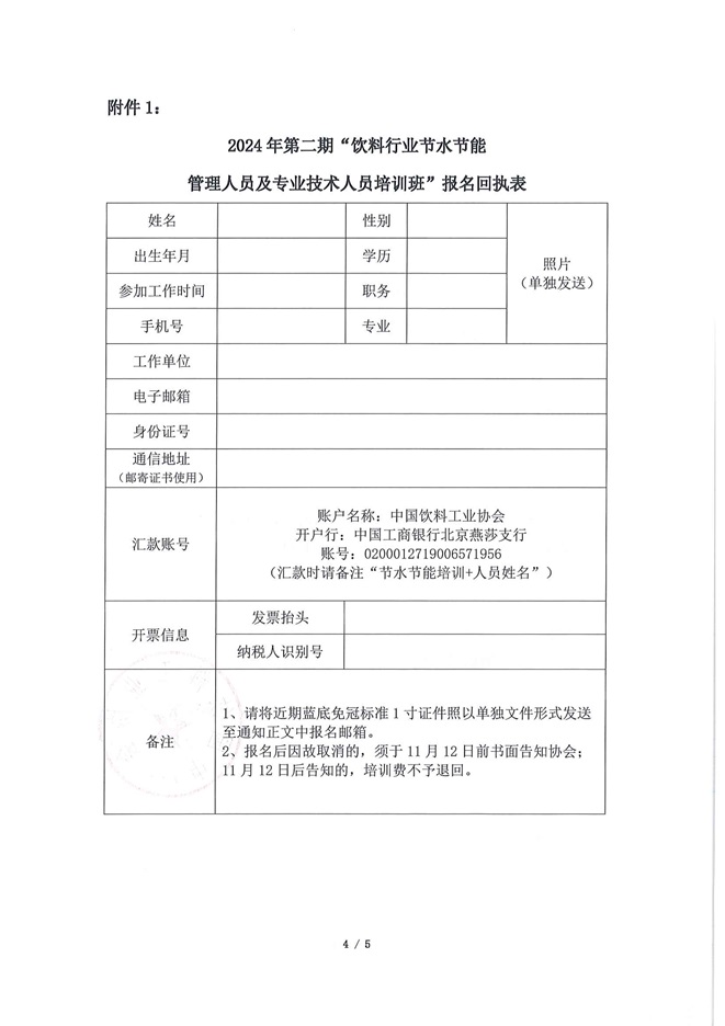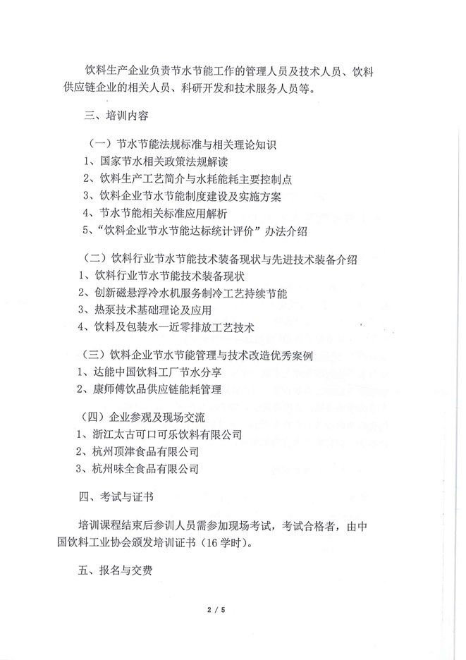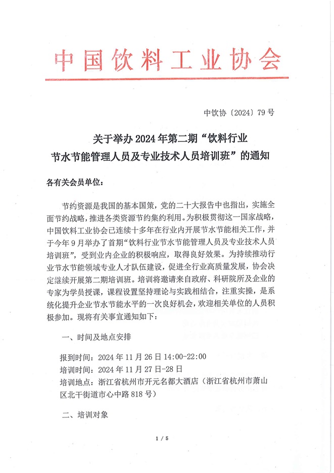 关于举办2024年第二期“饮料行业节水节能管理人员及专业技术人员培训班”的通知