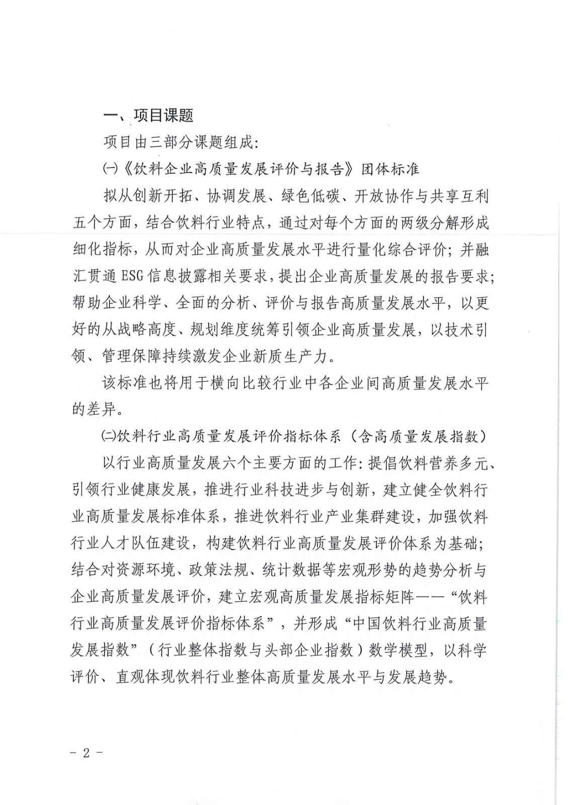 关于启动“中国饮料行业高质量发展评价体系研究”项目的通知