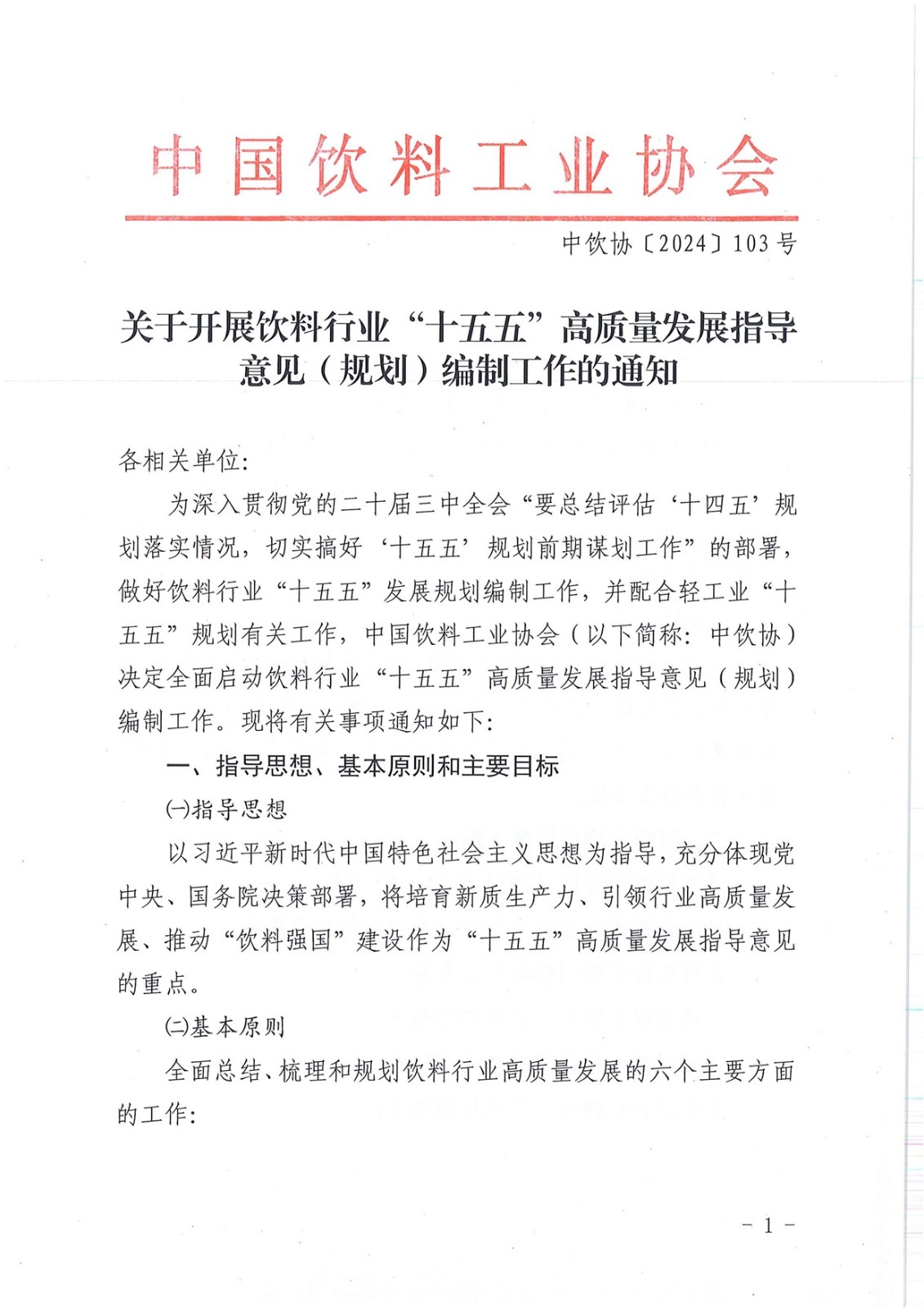 关于开展饮料行业“十五五”高质量发展指导意见(规划)编制工作的通知(中饮协〔2024〕103号).pdf