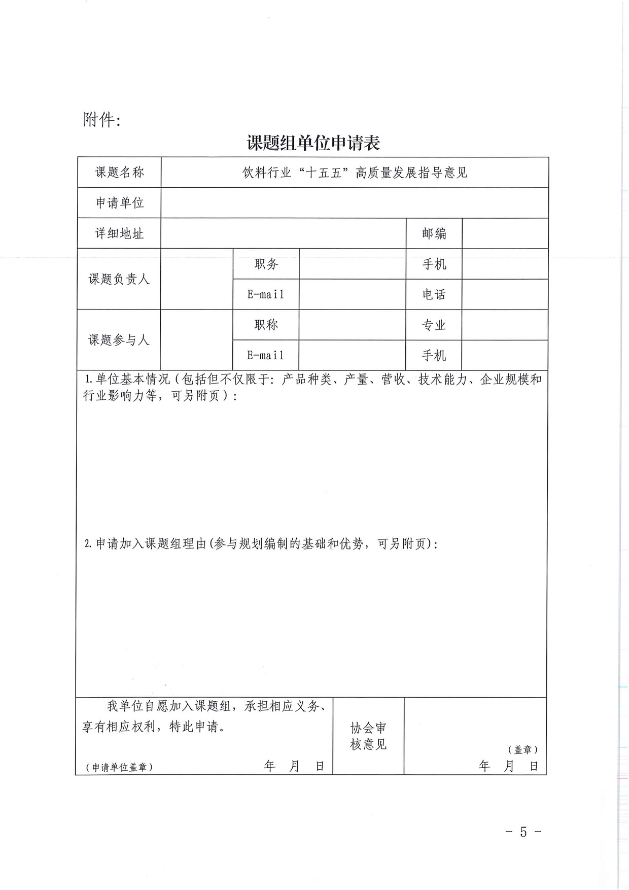 关于开展饮料行业“十五五”高质量发展指导意见(规划)编制工作的通知