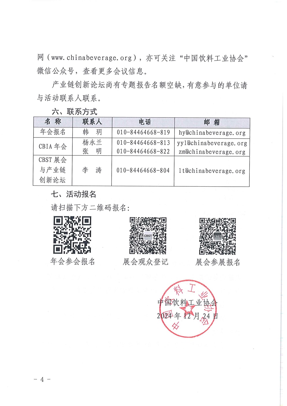 2024中国饮料工业协会年会暨CBST2025国际饮料工业科技展览会系列活动预通知
